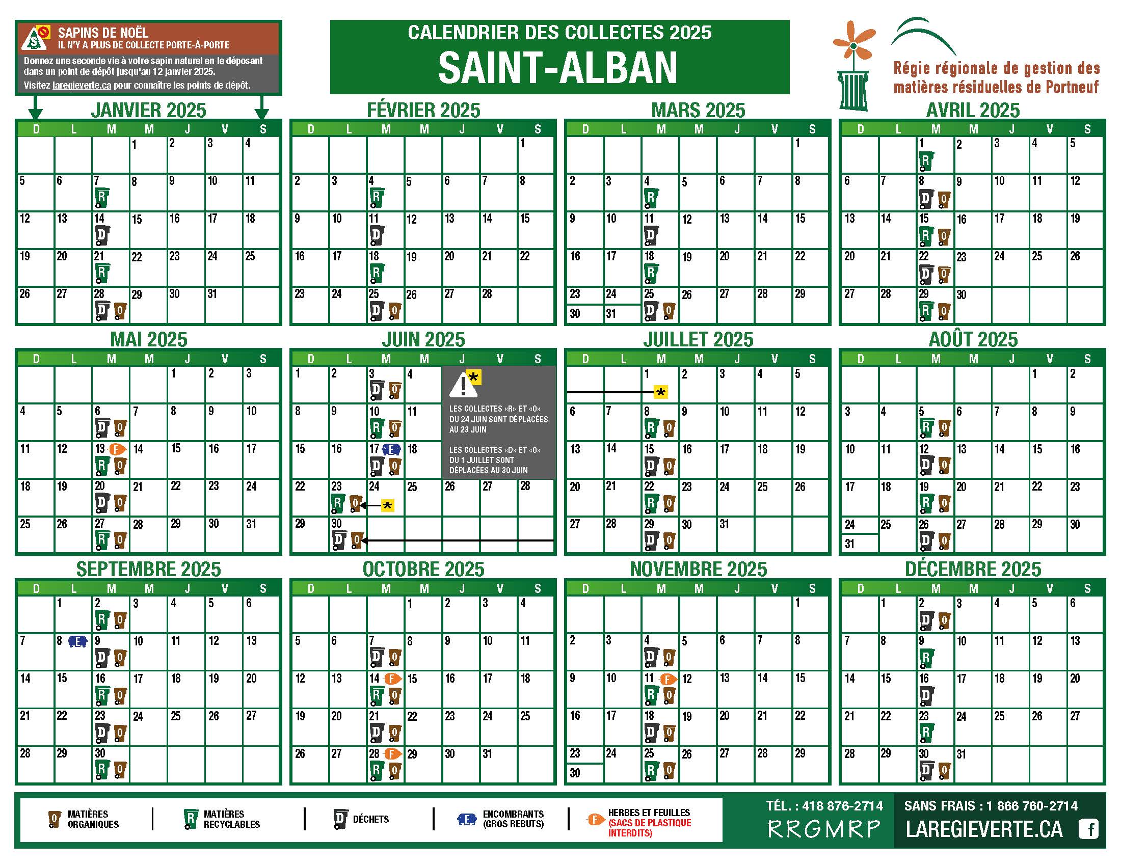 Calendrier collecte 2026 - calendrier régie - Calendrier collecte 2025 - calendrier regie