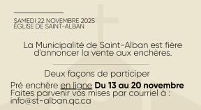 💬 Faites parvenir vos mises par courriel à : info@st-alban.qc.ca